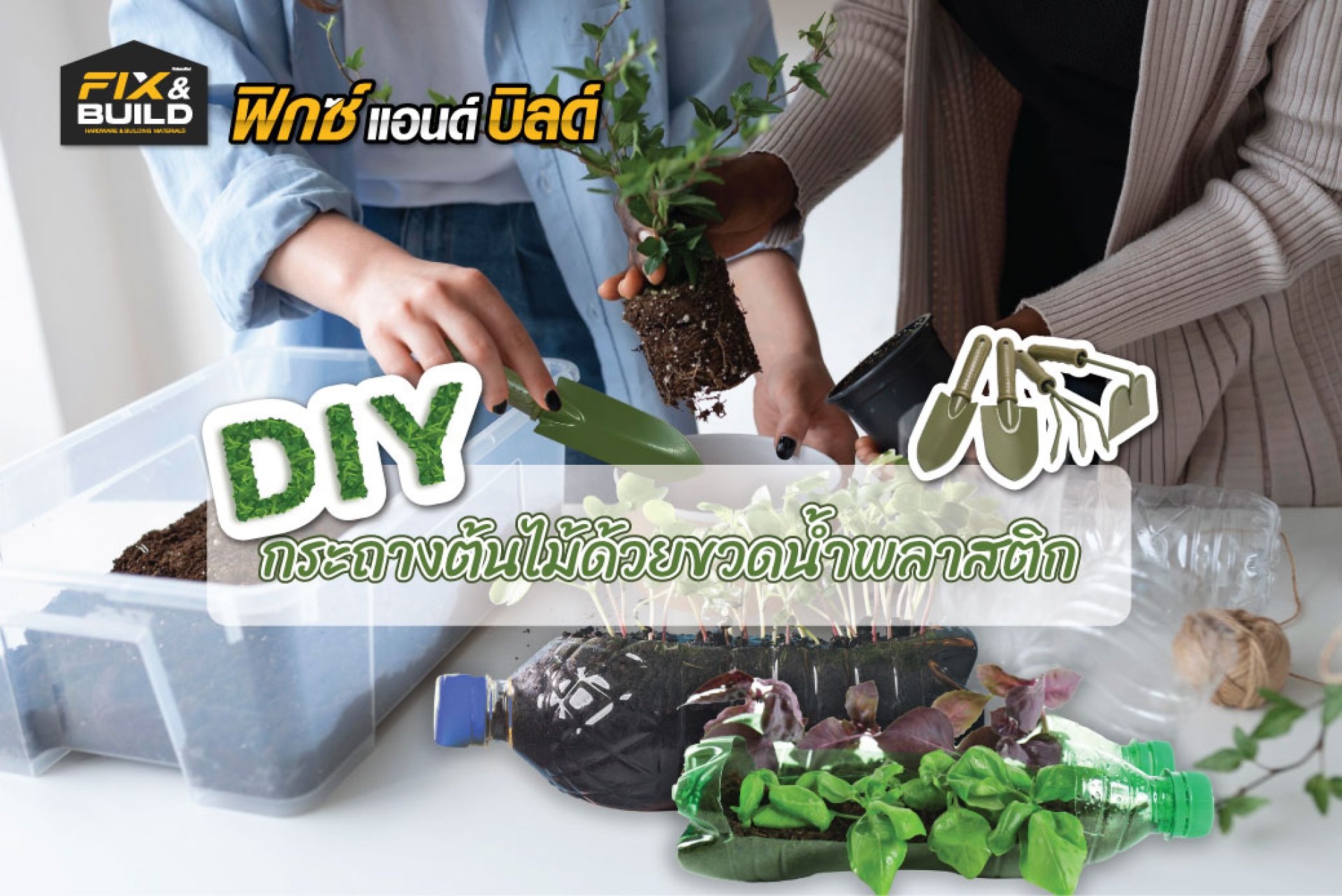 - ขวดพลาสติก (ขนาดและรูปทรงตามต้องการ)