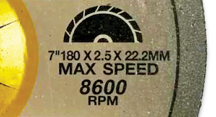 ใบตัดและใบเจียรจะมีการระบุค่าความเร็วรอบสูงสุด (RPM) บนฉลากสินค้า การใช้งานความเร็วเกินค่าที่ระบุอาจทำให้ใบแตกและเป็นอันตรายได้ ตัวอย่างเช่น ใบตัดที่มีขนาดเล็กมักรับความเร็วรอบสูงได้มากกว่าใบที่ใหญ่
